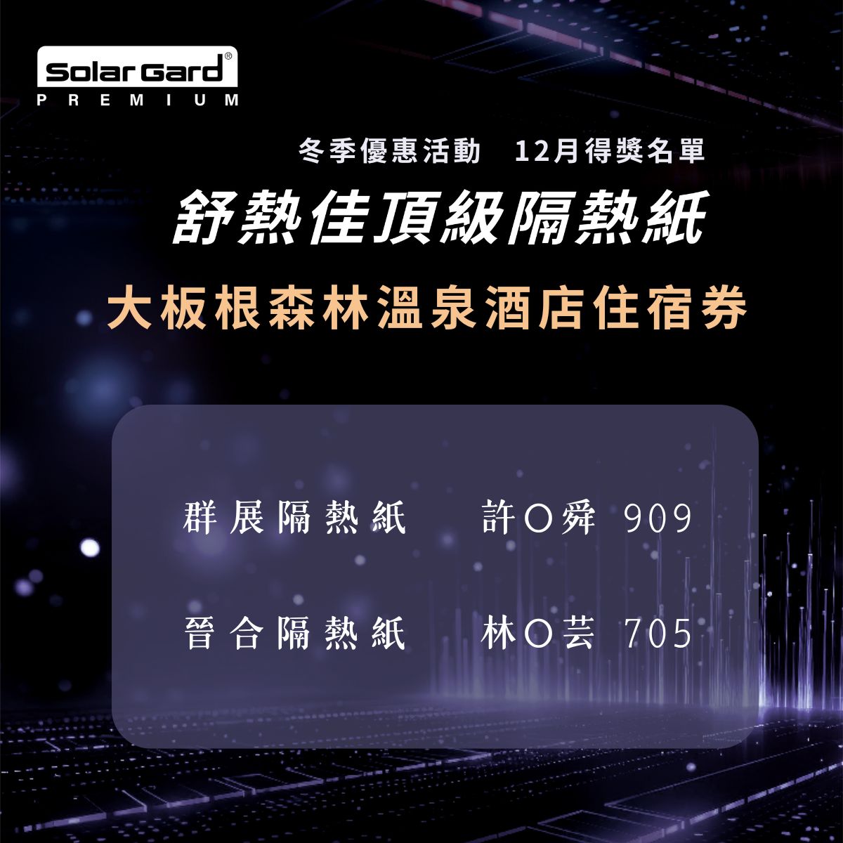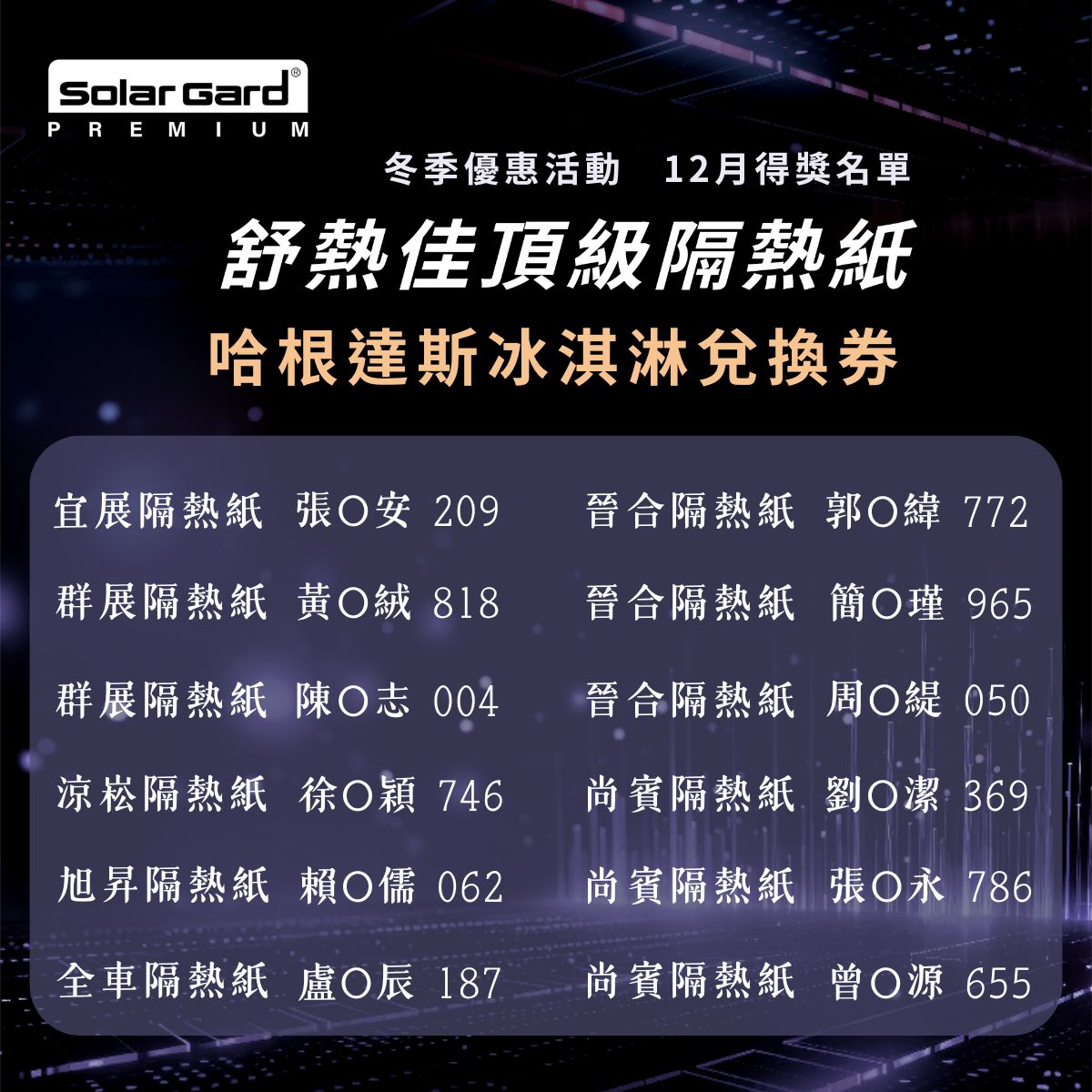 2024-2025冬季汽車隔熱紙優惠活動 | 12月得獎名單出爐