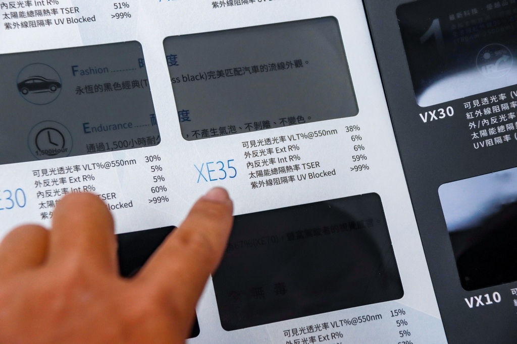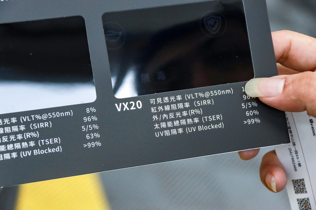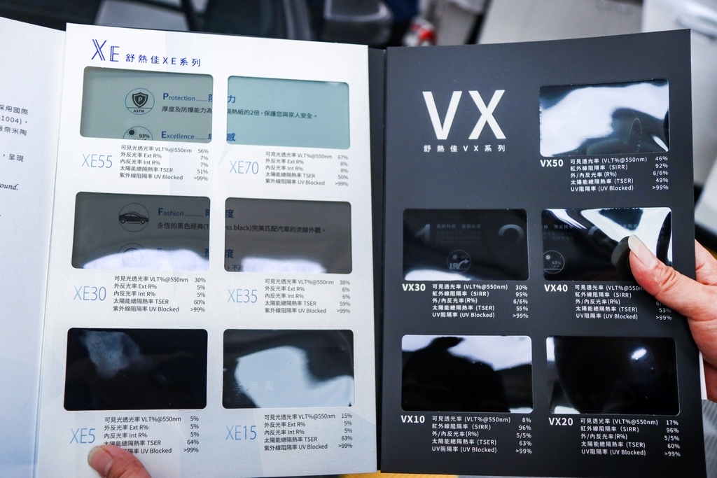 這次使用的方案是夏季優惠活動的 方案2 XE35+VX20,XE+VX組合系列有著世界主流頂級奈米陶瓷塗佈技術製成,總隔熱率(TSER)可高達63%,隔熱超有感車內不悶熱。