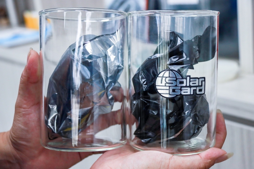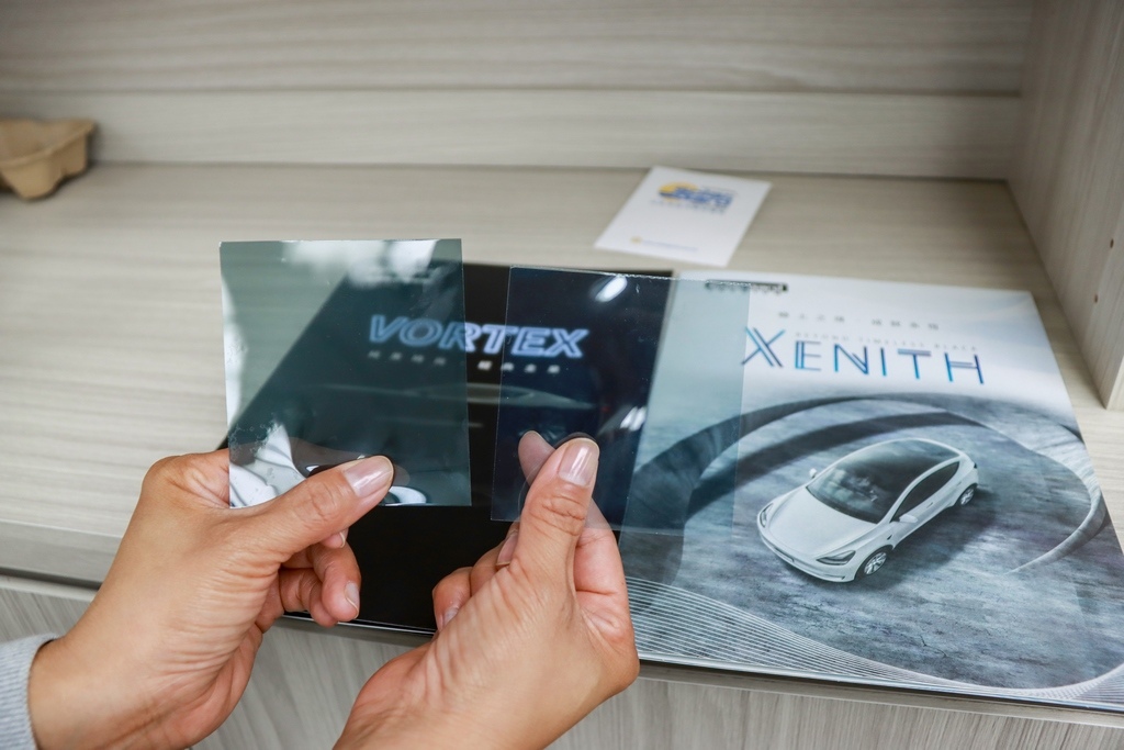 如果有來現場施作舒熱佳隔熱紙的話,也可以現場測試與他牌隔熱紙,像是XE隔熱紙與他牌摸起來就有明顯厚度。