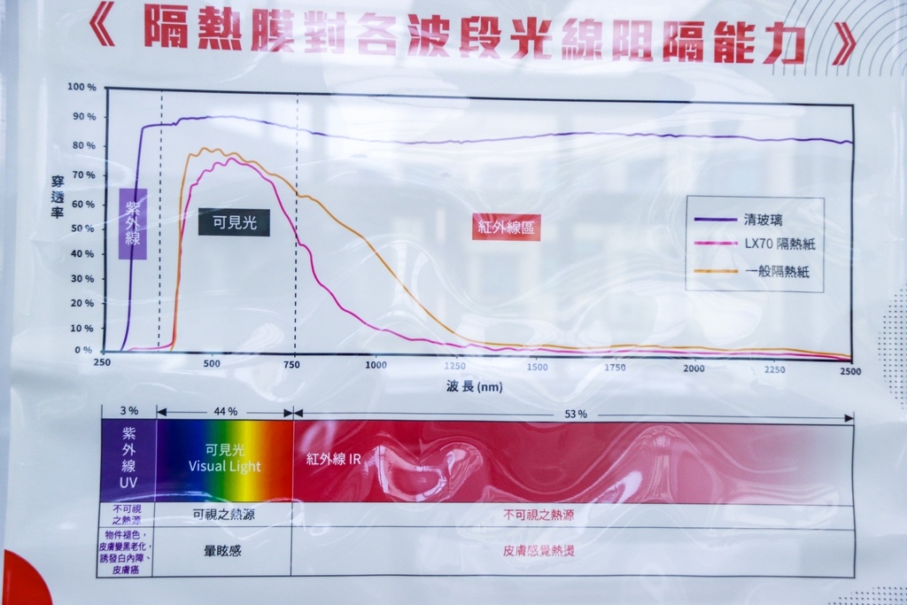 現場也有介紹隔熱膜原理,比較細節的部分可以由服務人員來介紹了。