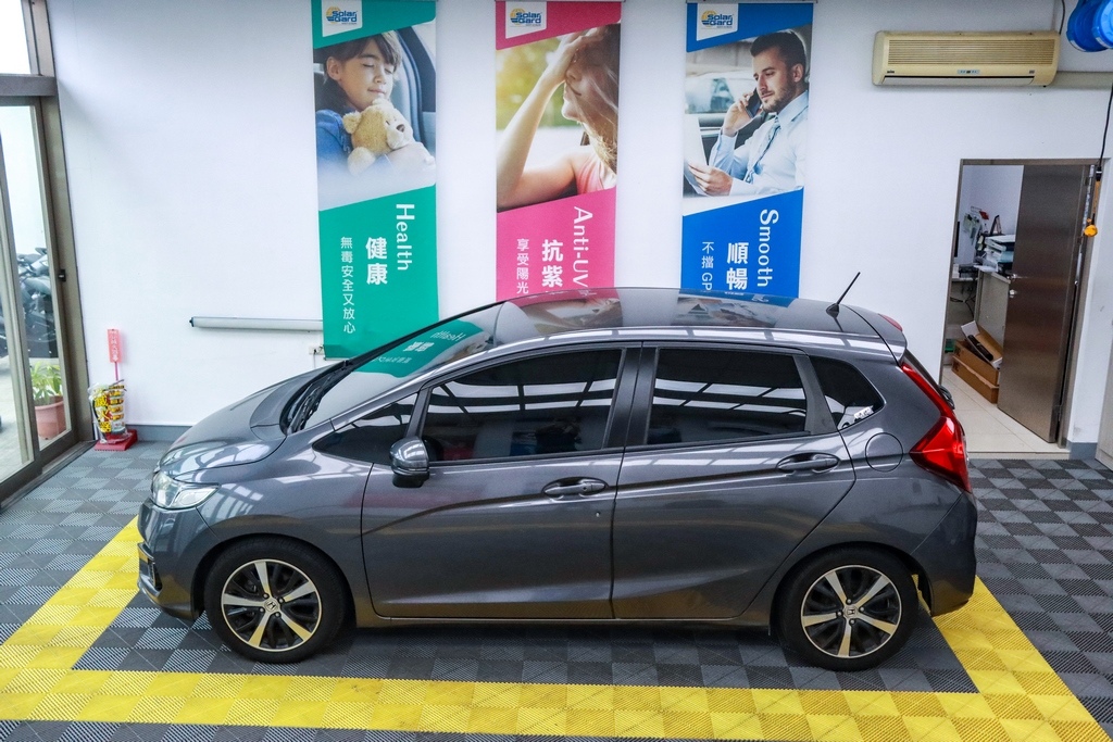 以FIT來說玻璃面積來說算大的,所以在貼隔熱紙的時候,也會調整隔熱紙的弧度。