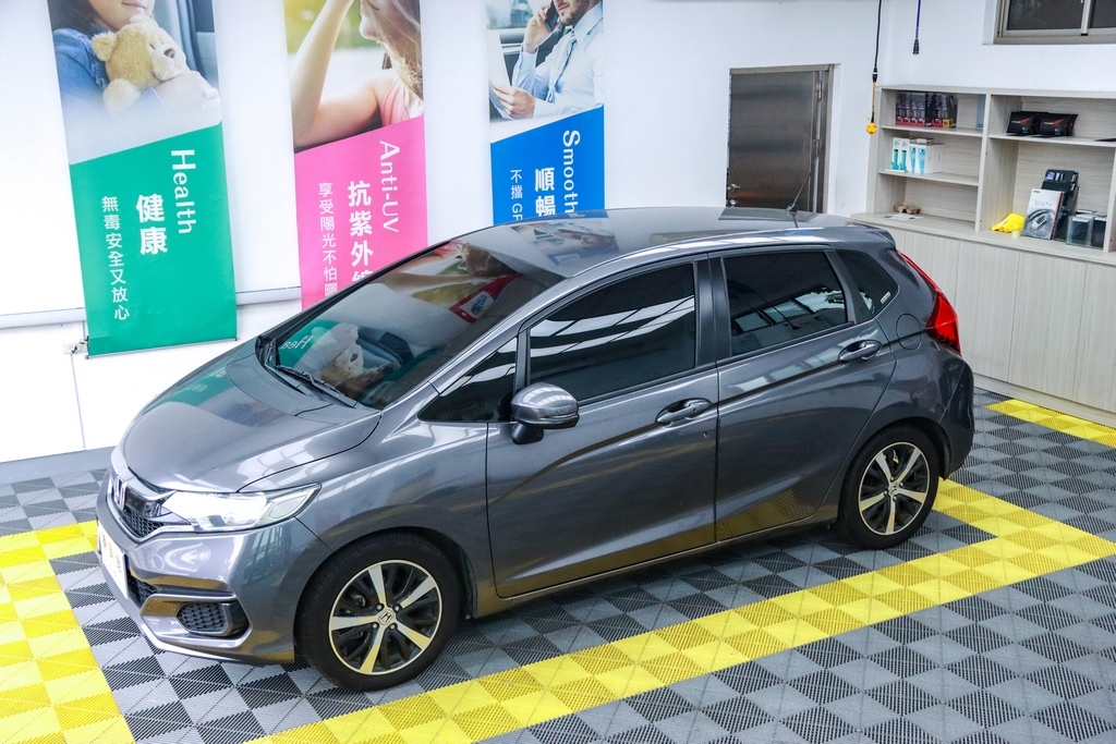 貼隔熱紙之前,由於先前FIT剛交車時已經有貼隔熱紙了,所以需要先將之前的隔熱紙卸下並除膠,所以施工時間會稍微比較久一些。